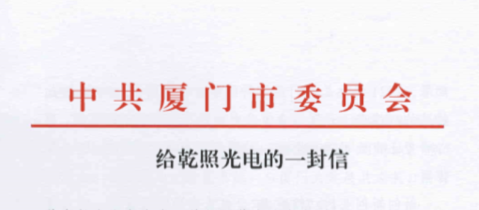近日,乾照光電收到中共廈門市委員會的來信,信中廈門市委、市政府對于我司過去一年的發(fā)展給予了積極的評價,并在一元肇始之際,對我司表達了新年的祝福和誠摯的問候,同時就我司2021年的發(fā)展規(guī)劃做出重要指引。 “天...