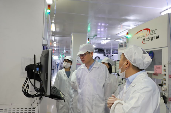 陳區(qū)長先后參觀了公司展廳及生產(chǎn)車間,集團(tuán)藍(lán)綠事業(yè)部總經(jīng)理、江西乾照光電總經(jīng)理劉兆向陳區(qū)長詳細(xì)介紹了產(chǎn)品的工藝流程。陳區(qū)長對乾照光電的產(chǎn)品及項(xiàng)目進(jìn)行深入的了解,并就關(guān)心的問題與陪同人員進(jìn)行深入的交流。